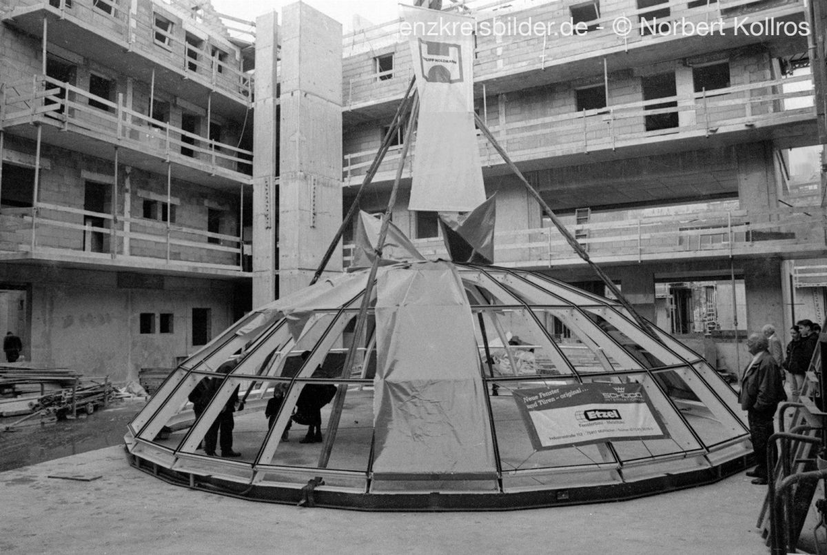 Baustelle Kuppel auf Rathaus Mühlacker ca. 1989