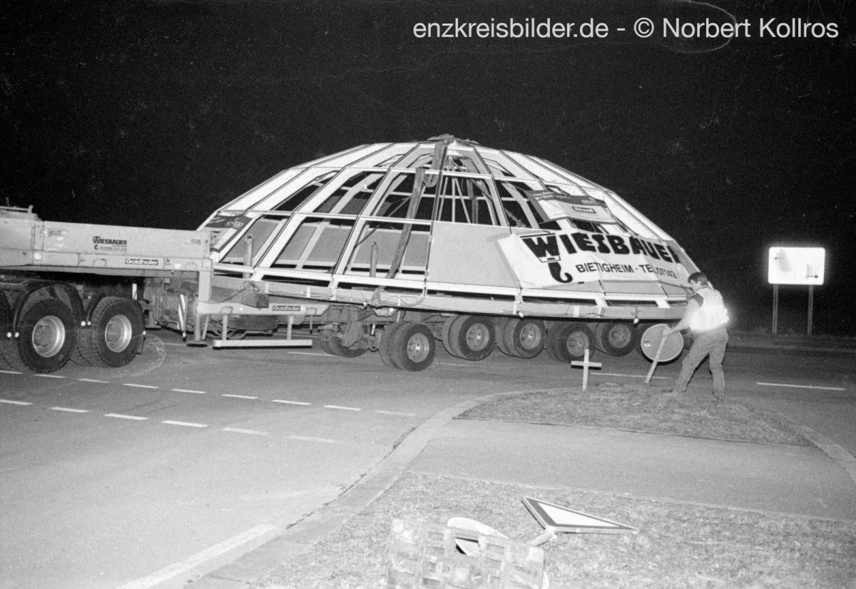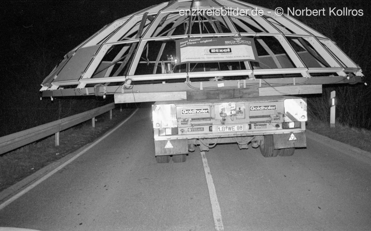 Transport und Baustelle Kuppel auf Rathaus Mühlacker ca. 1989